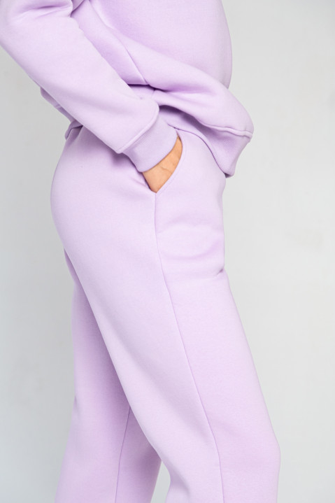 Средняя посадка. Широкая резинка на талии. Рельефная трикотажная резинка по нижнему краю брюк. Мягкая изнанка с начесом.