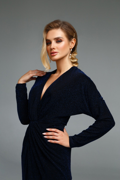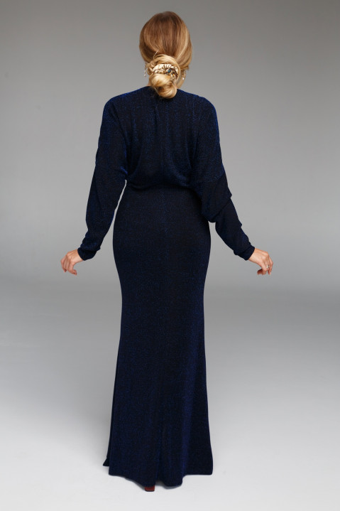 Представляем потрясающее платье в пол с длинным рукавом-бабочкой! Его крой создавался, чтобы легко моделировать фигуру, превращая её в женственные песочные часы. Вырез на ножке подчеркнёт стройность. А переливающаяся ткань добавит в образ загадки.