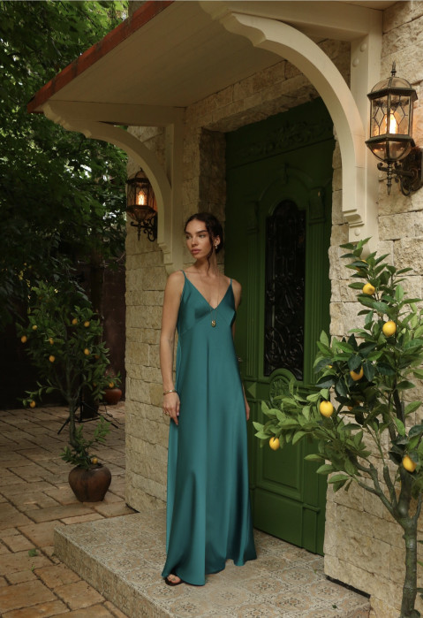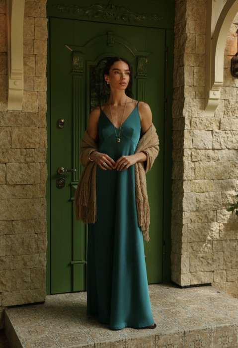 Платье выполнено из легкого и воздушного атласа, который нежно обнимает фигуру, создавая эффект струящегося силуэта. Удобные тонкие бретели и глубокий вырез придают образу романтичности и шарма. Минималистичный дизайн позволяет вам легко сочетать его с различными аксессуарами, создавая уникальные образы на каждый день