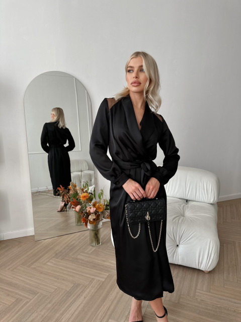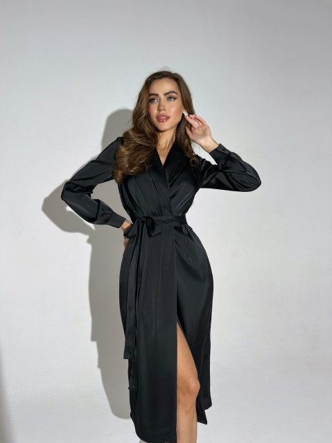 Чудесное платье-роба с длинным рукавом и сетчатыми вставками — прекрасный пример наряда на все случаи. Может, вы отправитесь в нём на лучший вечер сезона, а может, выберете платье своим домашним нарядом. В любом случае этот фасон вам снимать не захочется.