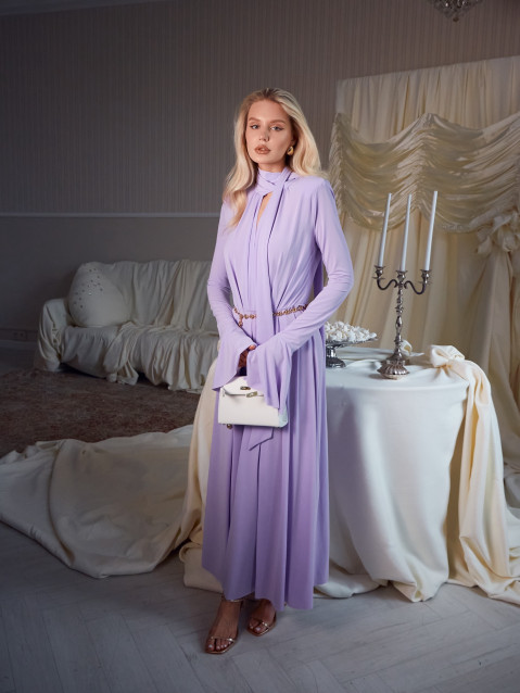 Элегантное платье миди с длинным рукавом. Оно идеально сочетает в себе стиль и комфорт, благодаря резинке на талии, которая подчеркивает фигуру и создает изящный силуэт. Длинные рукава добавляют нотку sophistication, а защипы придают платью особый шарм и динамику. Платье станет вашим незаменимым спутником как на торжественных мероприятиях, так и в повседневной жизни.