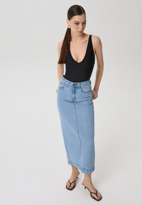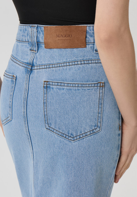 Представляем вам нашу стильную джинсовую юбку-карандаш в длине миди — идеальное сочетание классики и современного дизайна. Эта юбка станет незаменимым элементом вашего гардероба, позволяя создавать множество эффектных образов для любого случая. Изготовлена из высококачественного денима, который обеспечивает прочность и долговечность, сохраняя при этом комфорт и свободу движений. Джинсовая ткань мягкая и приятная на ощупь, что делает юбку идеальной для повседневной носки. Элегантный силуэт подчеркивает линии фигуры, создавая утонченный и женственный образ. Разрез сзади добавляет нотку дерзости и обеспечивает удобство при движении, делая юбку не только стильной, но и практичной.