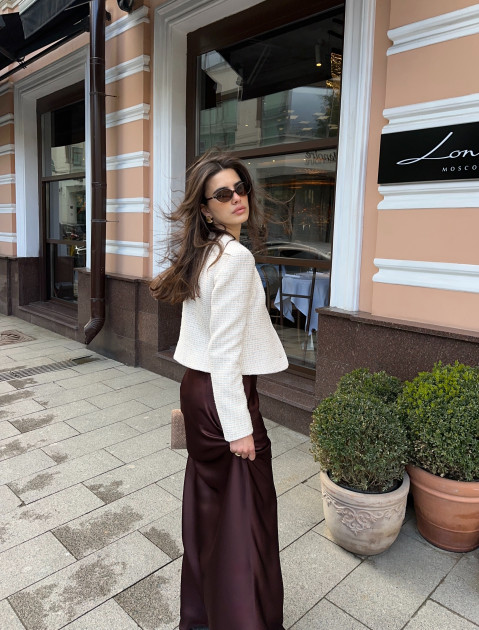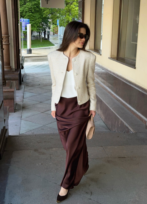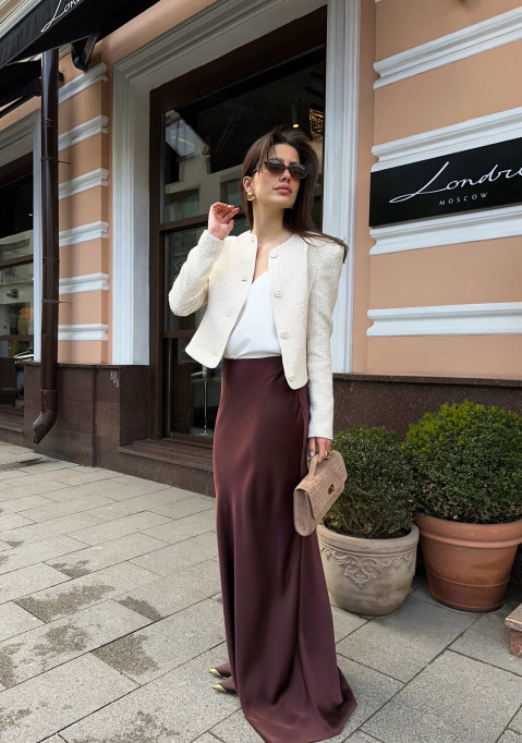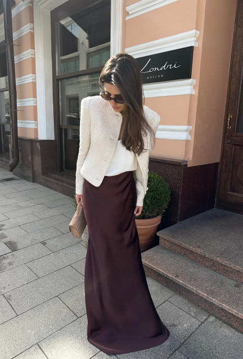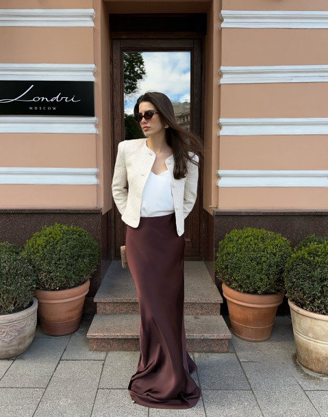 Юбка из благородного плотного атласа длины макси станет воплощением женственности и изысканности. Мягкий струящийся материал нежно облегает фигуру, создавая идеальный силуэт. Элегантный дизайн подчеркивает природную красоту и грацию, делая образ завершённым и чарующим.