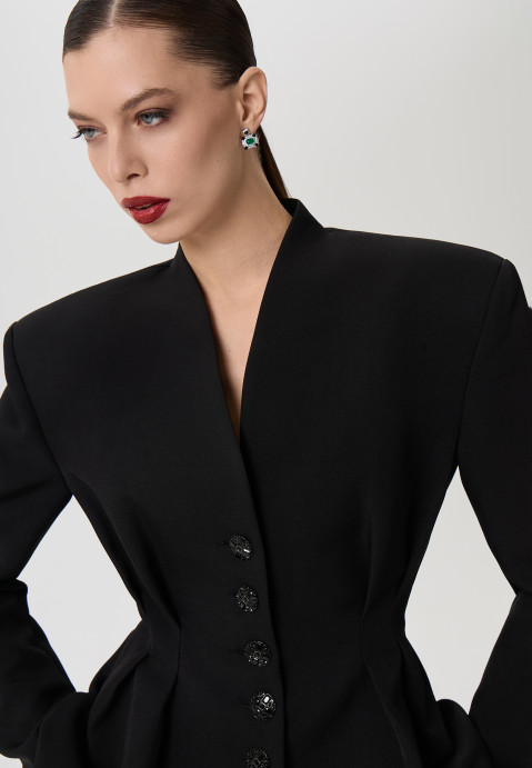 Жакет приталенного силуэта — бестселлер коллекции. Его четкие линии и аккуратная посадка создают эффектный контур, акцентируя талию и придавая образу изысканности.