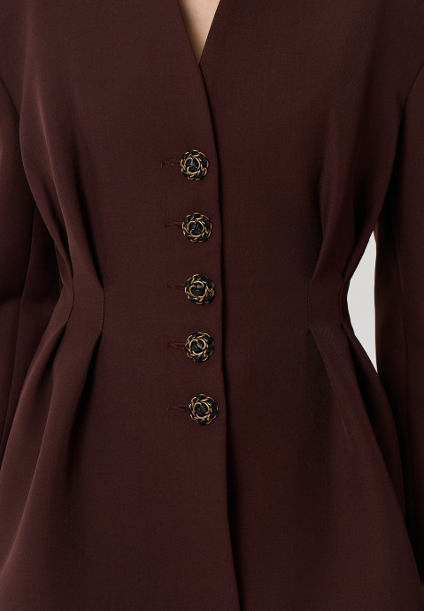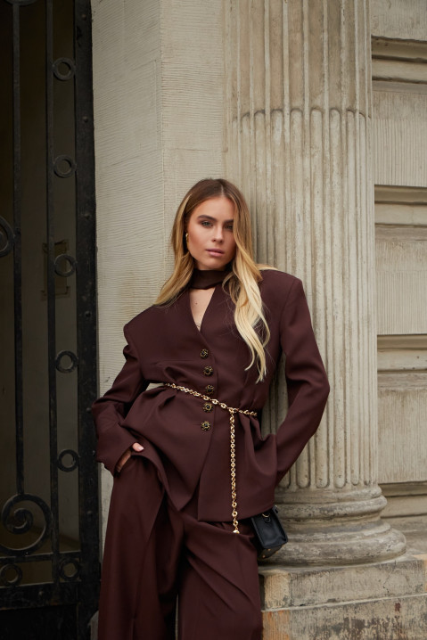 Жакет приталенного силуэта — бестселлер коллекции. Его четкие линии и аккуратная посадка создают эффектный контур, акцентируя талию и придавая образу изысканности.
