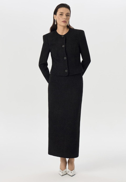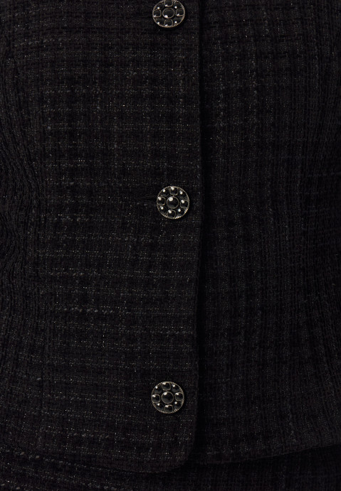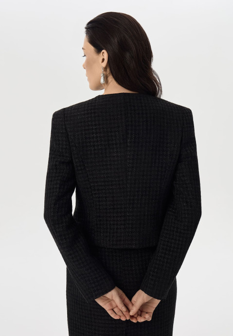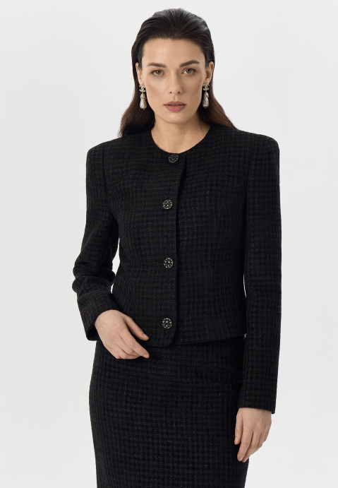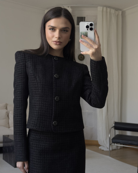 Жакет из высококачественного твида станет настоящей находкой. Укороченная длина позволяет продемонстрировать талию. Материал отличается мягкостью и износостойкостью, обеспечивая максимальный комфорт даже при длительном ношении. Такой жакет прекрасно сочетается с юбкой из твида, джинсами, брюками и платьями, дополняя ваш гардероб и привнося новые яркие акценты.