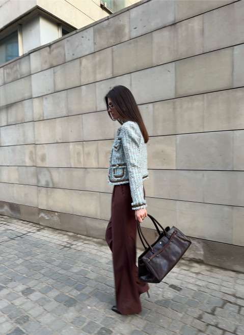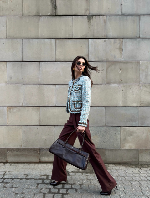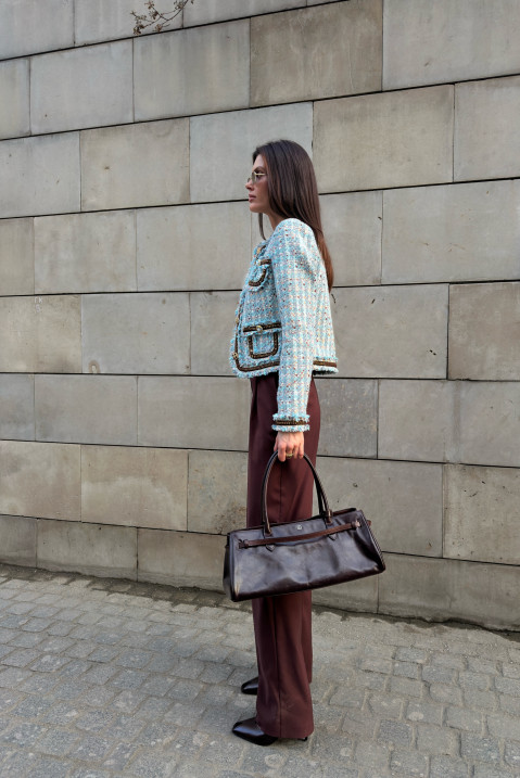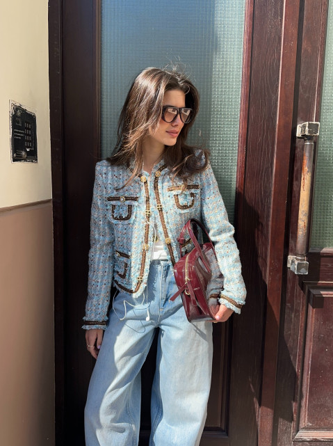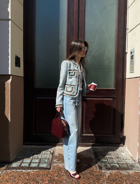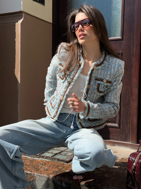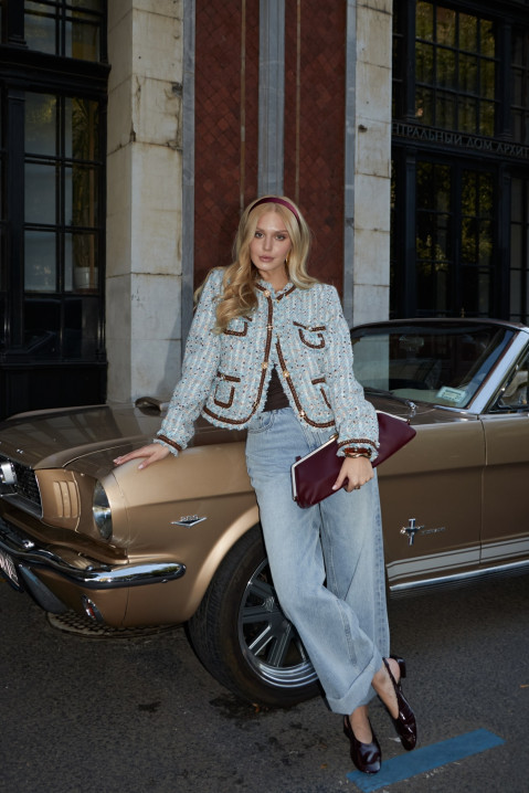 Этот кроп-жакет из высококачественного твида станет настоящей находкой для вашей коллекции верхней одежды. Укороченная длина позволяет продемонстрировать талию, а накладные карманы добавляют дизайну игривость и современность. Материал отличается мягкостью и износостойкостью, обеспечивая максимальный комфорт даже при длительном ношении. Такой жакет прекрасно сочетается с джинсами, брюками и платьями, дополняя ваш гардероб и привнося новые яркие акценты.